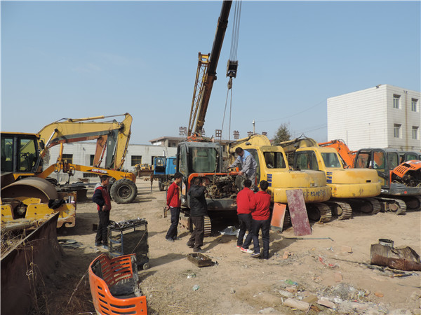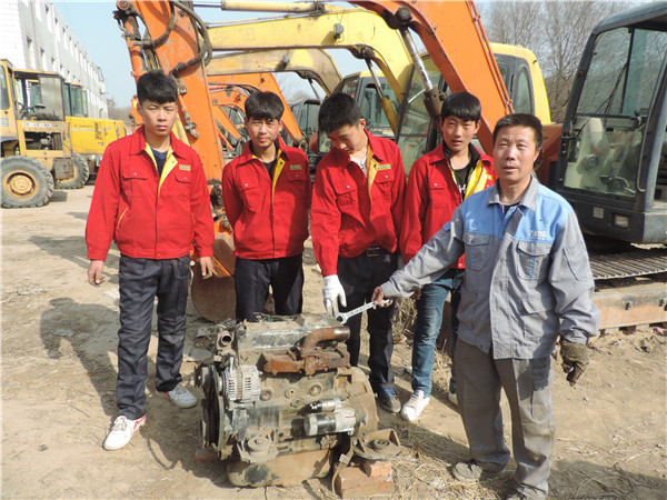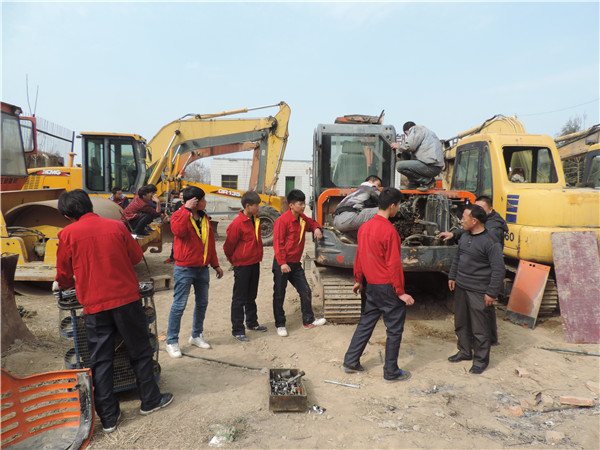 3月8日,3月9日渭南普田轨道交通职业学校工程司训专业的学生在丁文革、胡小勇、王秋凯、王剑等教师的带领下更换斗山80型挖掘机的发动机,对临工18型装载机进行大修,给学生边拆边讲解,要能找到故障,能处理故障,能拆的下来,能装的上去,这就是初级修理工。