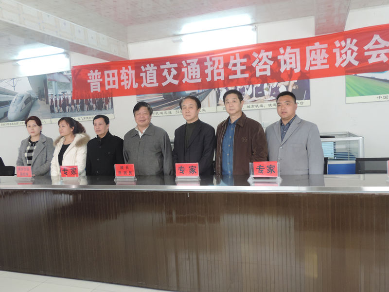 2015年3月6日号,应普田轨道交通学校邀请,西铁局人力资源公司、兰铁人力资源公司、深铁局人力资源公司代表,齐聚渭南普田轨道交通职业学校,与学校领导校长田润民,主管定向安置的副校长郝国平同志,招办主任强红梅同志、安置办主任张玉华同志、军事化管理教官王剑锋同志、等部分学生家长、学生一块举行了一个坦率诚挚的座谈会,会上西铁、兰铁、深铁的代表分别重点介绍各局用人意向,以及紧缺人才的前景与需求,并希望我校能急招一批高铁乘务学生,进行六个月至一年的速成培训,尽快安排到铁路单位,已解决当前人才需求的燃眉之急。