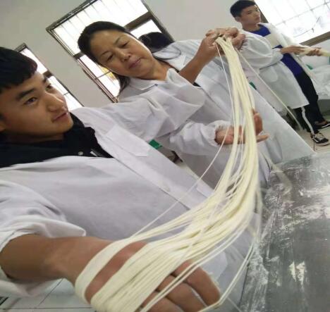 和指导,特别是结合学生所学烹饪专业,从学好一技之长,成自食其力的劳动者入手,满腔热情地向学生传授烹饪技能,手把手教学生炸油糕、刀削面、拉面等等,鼓励学生放下思想包袱,学好技能,早日脱贫致富。