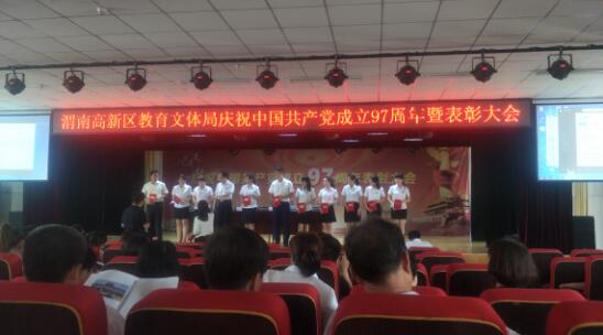 渭南普田交通职业学校应邀在渭南高新区教育文体局庆祝中国共产党成立97周年暨表彰大会